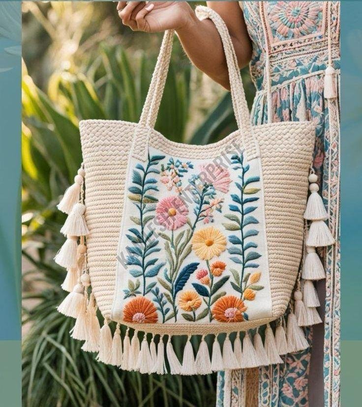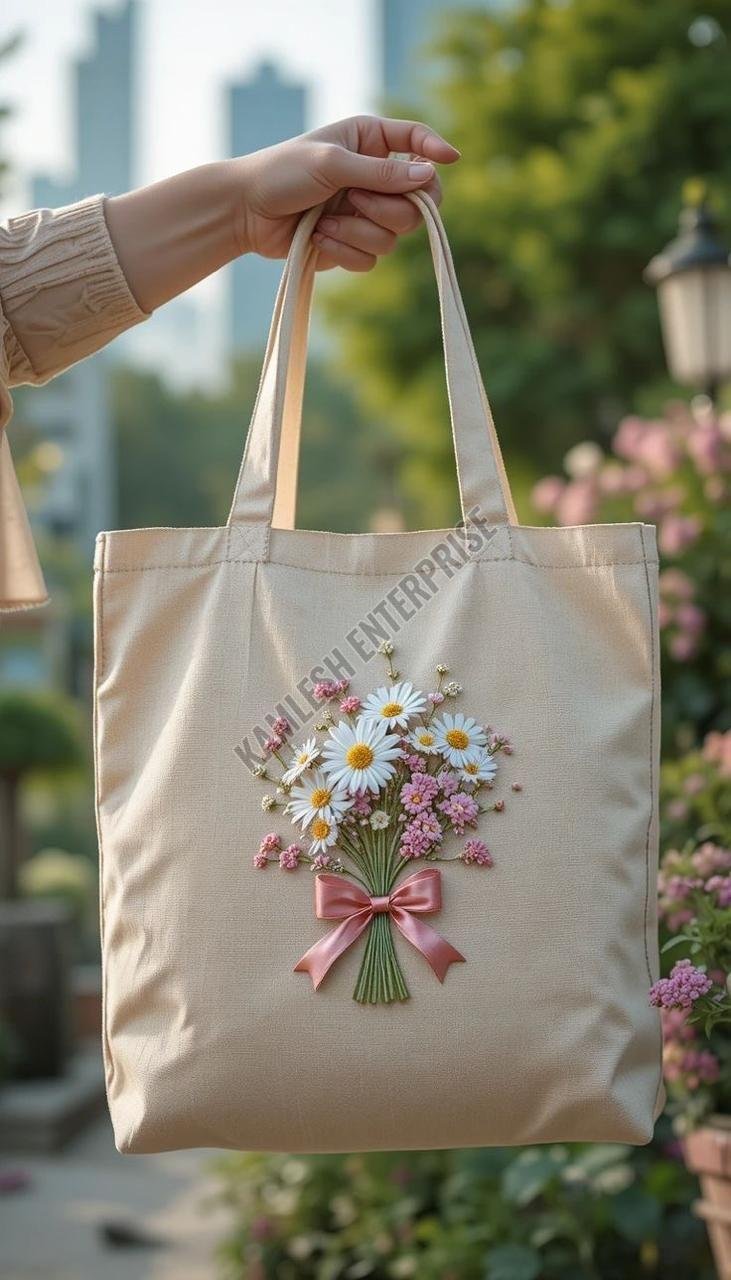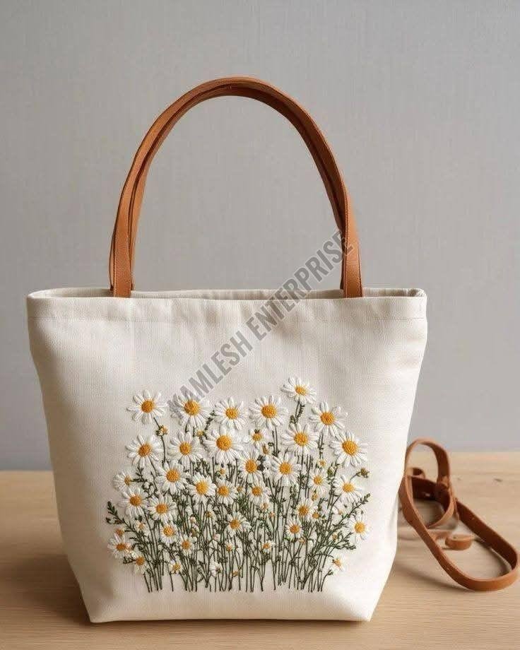 We offer a beautifully hand-embroidered floral tote bag that is light in weight and perfect for everyday use. Made from high-quality cotton material in India, this multicolor tote bag exudes elegance and style. The intricate floral design adds a touch of sophistication to your outfit. Each tote bag comes packaged in a convenient plastic bag. Ideal for exporters, suppliers, and traders looking to add a touch of Indian craftsmanship to their product line.
