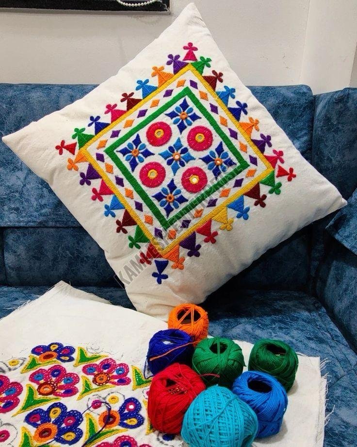 Leading Exporters, Wholesaler and Trader of Bohemian Style White Cotton Pillow Cover, Colorful Circular Pattern White Cotton Embroidered Cushion Cover, Elephant Design Hand Embroidered Cushion Cover, French Knot Embroidered Tree Motif Cushion Cover, Geometric Patchwork Design Cotton Cushion Cover, Hand Stitched Cotton Pillow Cover, Multicolor Cotton Gujarati Embroidered Cushion Cover, Multicolor Suzani Embroidered Cushion Cover, Traditional Hand Embroidered Cotton Cushion Cover and White Embroidered Floral Cushion Cover from Barnala.