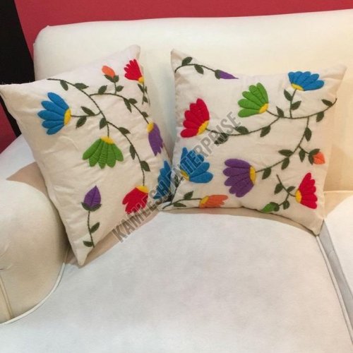 White Embroidered Floral Cushion Cover