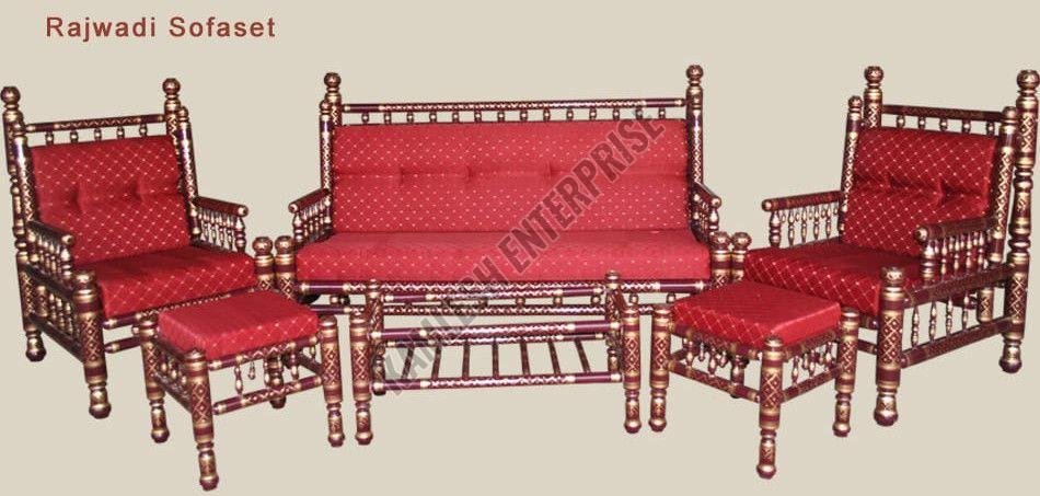 We offer an exquisite Sankheda Craft 7 Seater Rajwadi Wooden Sofa Set in vibrant multicolor, featuring a traditional Sankheda lacquered finish with hand-painted motifs. Crafted from solid hardwood, this authentic Sankheda handcrafted furniture showcases a traditional Indian design style. The high-gloss lacquer polish enhances its beauty, making it ideal for living rooms. With a seating capacity of 7, this wooden sofa set is perfect for exporters, suppliers, and traders looking to add a touch of elegance to their business category.