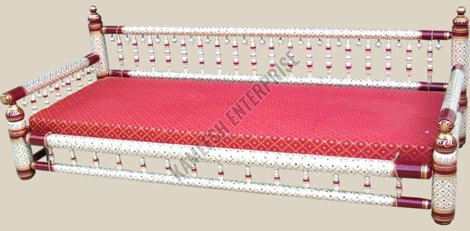 We offer a beautifully handcrafted 2 Seater Sankheda Wooden Diwan made from solid hardwood with a traditional Sankheda lacquer finish and hand-painted designs. This authentic Sankheda furniture piece features a multicolor palette, high-gloss lacquer polish, and is ideal for living rooms. Perfect for exporters, suppliers, and traders in the furniture business category looking to add a touch of elegance to their collection.